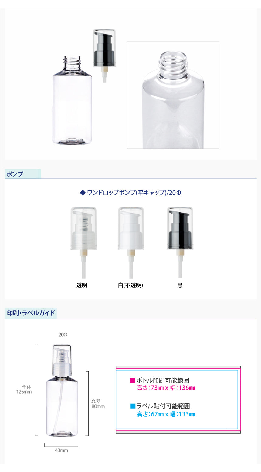 容量:100ml / 口径 : 20φ / 高さ:125mm / 直径 : 43mm