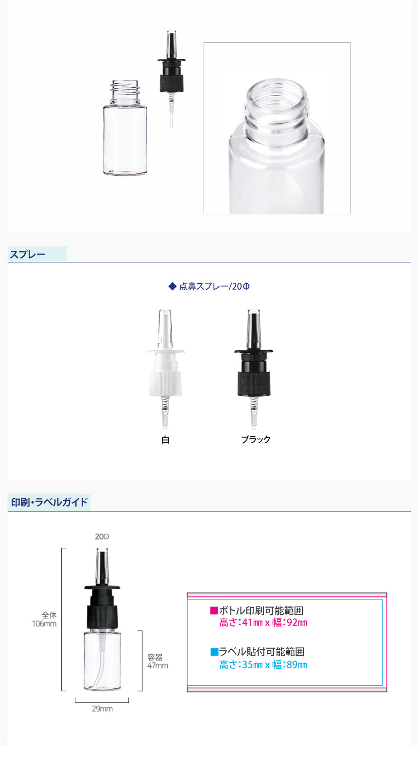 容量:20ml / 口径 : 20φ / 高さ:106mm / 直径 : 29mm