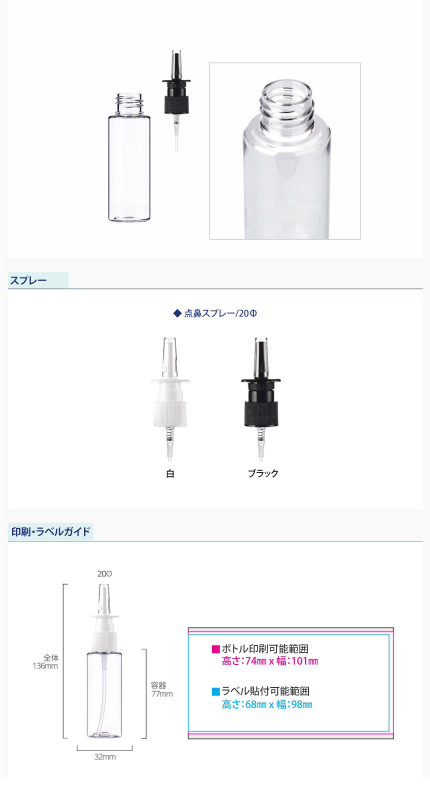 容量:50ml / 口径 : 20φ / 高さ:136mm / 直径 : 32mm