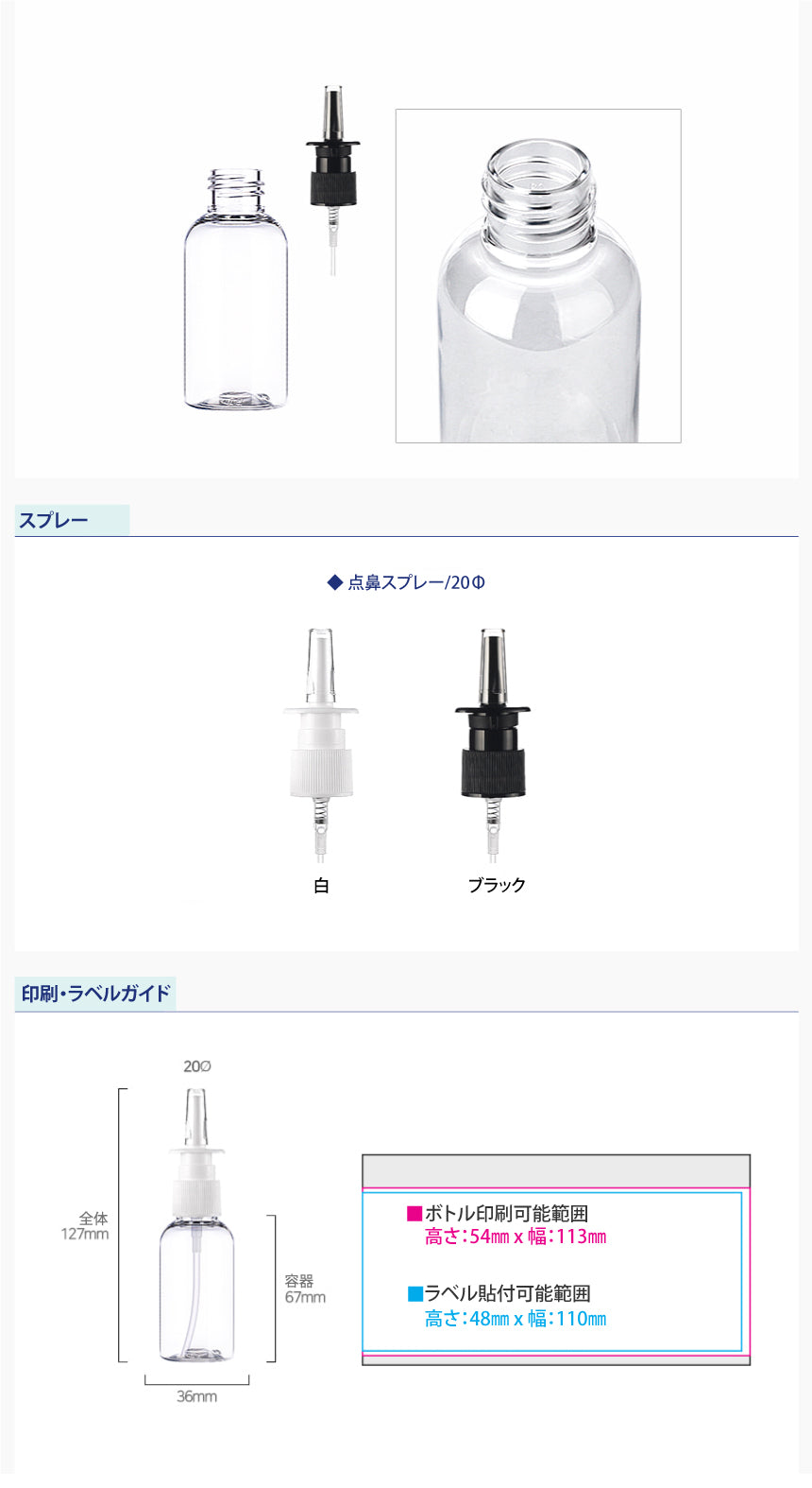 容量:50ml / 口径 : 20φ / 高さ:127mm / 直径 : 36mm