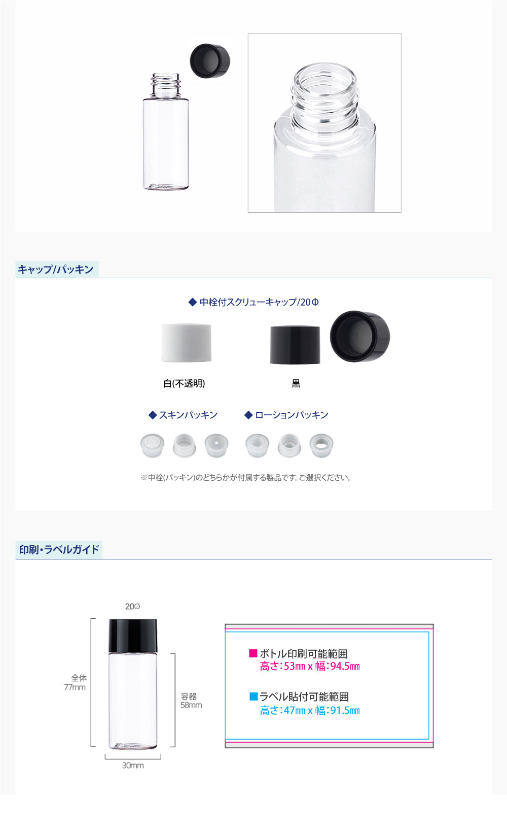 容量:30ml / 口径 : 20φ / 高さ:77mm / 直径 : 30mm