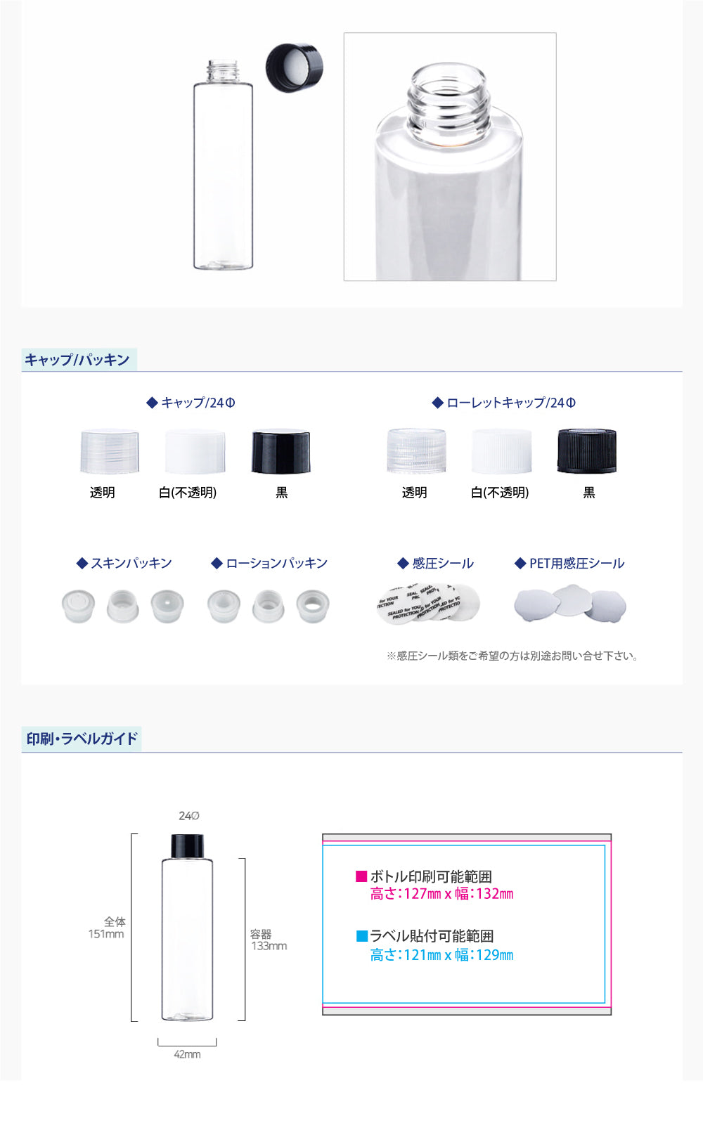 容量:150ml / 口径 : 24φ / 高さ:151mm / 直径 : 42mm