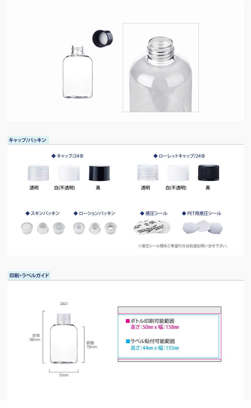 容量:150ml / 口径 : 24φ / 高さ:98mm / 直径 : 55mm