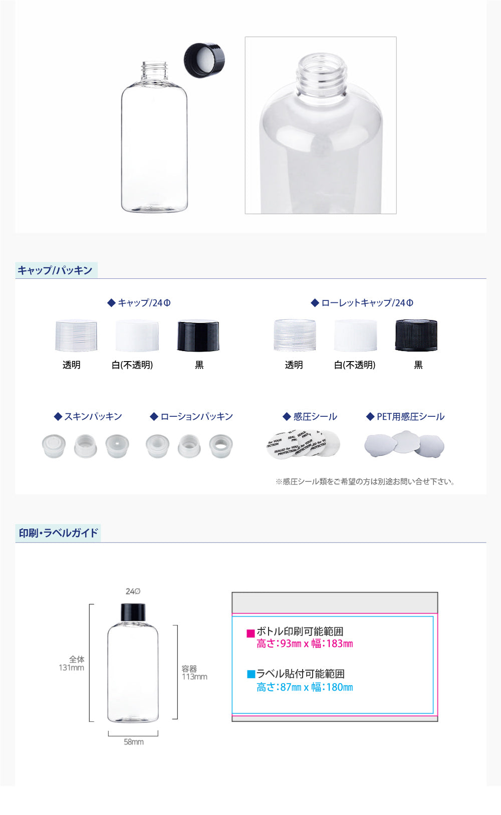容量:250ml / 口径 : 24φ / 高さ:131mm / 直径 : 58mm