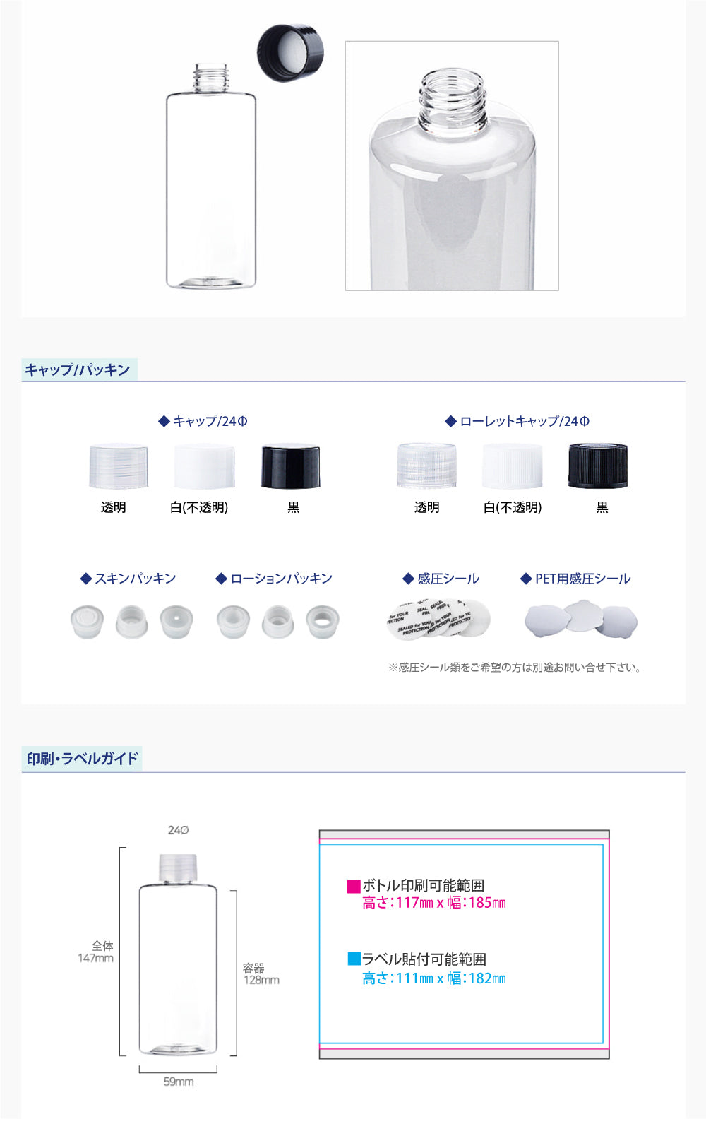 容量:300ml / 口径 : 24φ / 高さ:147mm / 直径 : 59mm