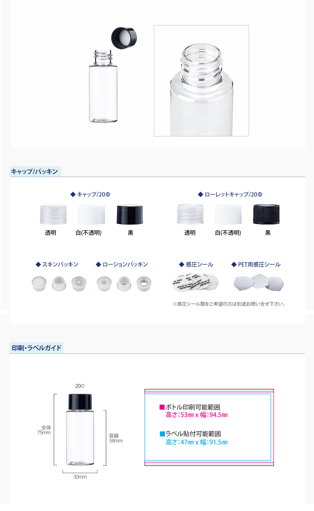 容量:30ml / 口径 : 20φ / 高さ:75mm / 直径 : 30mm
