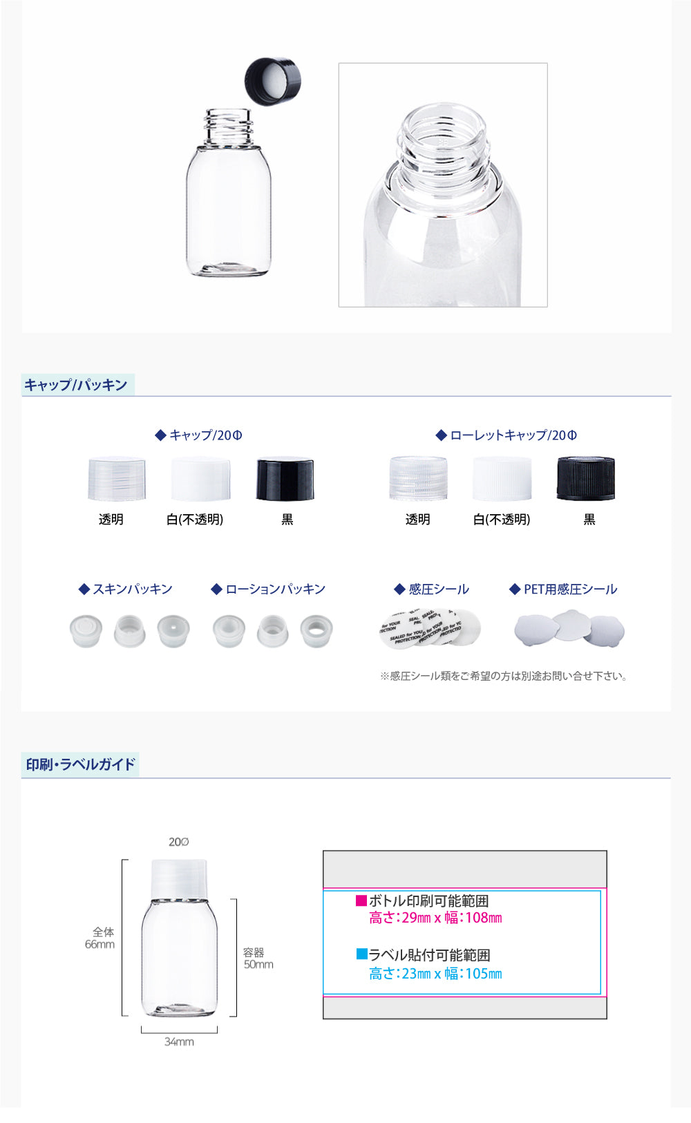 容量:30ml / 口径 : 20φ / 高さ:66mm / 直径 : 34mm