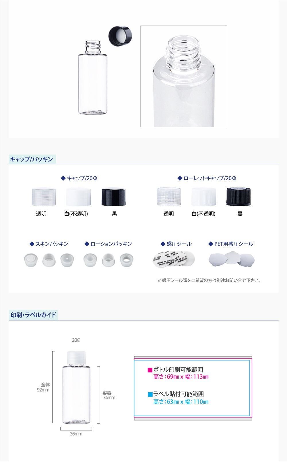容量:60ml / 口径 : 20φ / 高さ:92mm / 直径 : 36mm