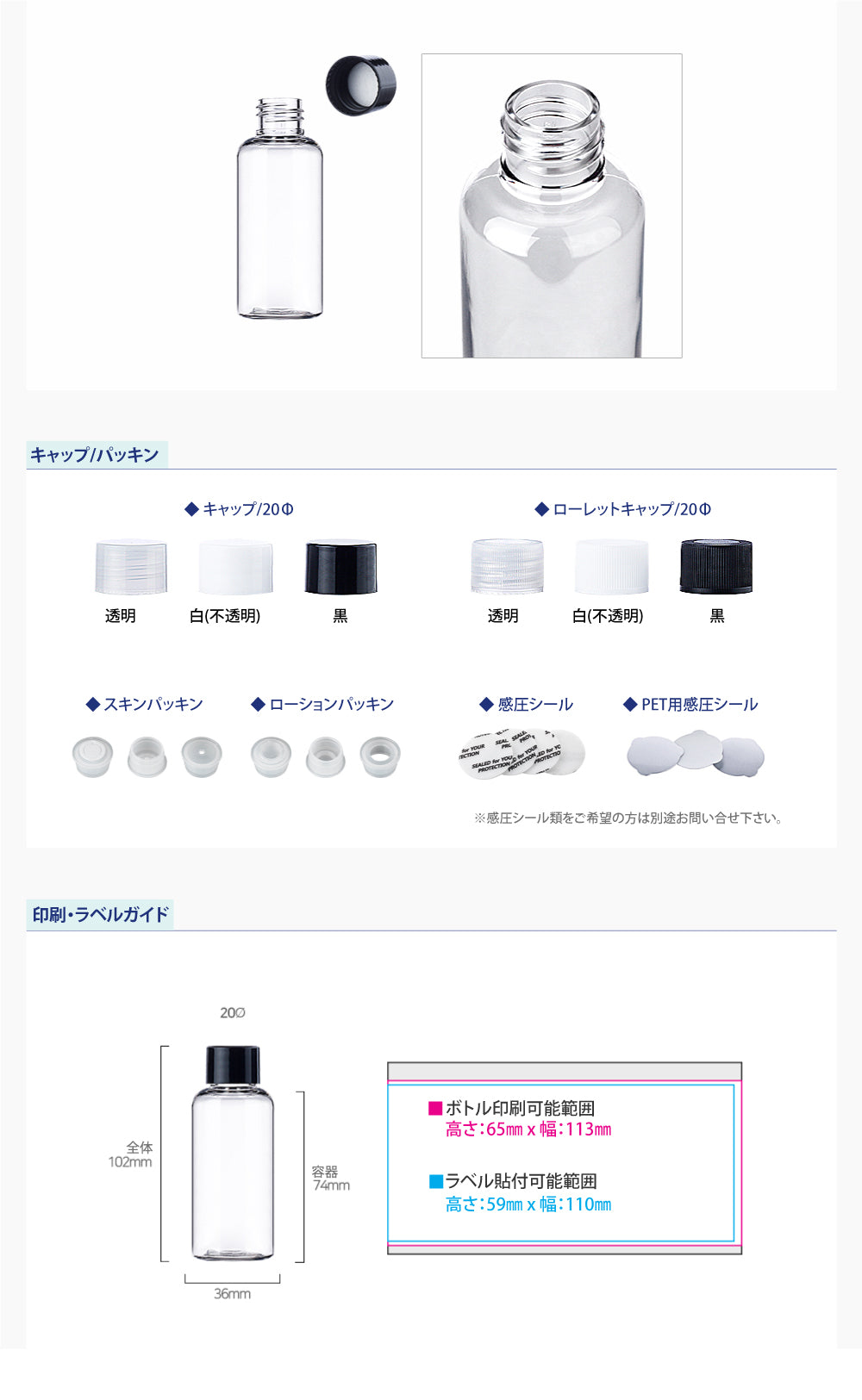 容量:60ml / 口径 : 20φ / 高さ:102mm / 直径 : 36mm
