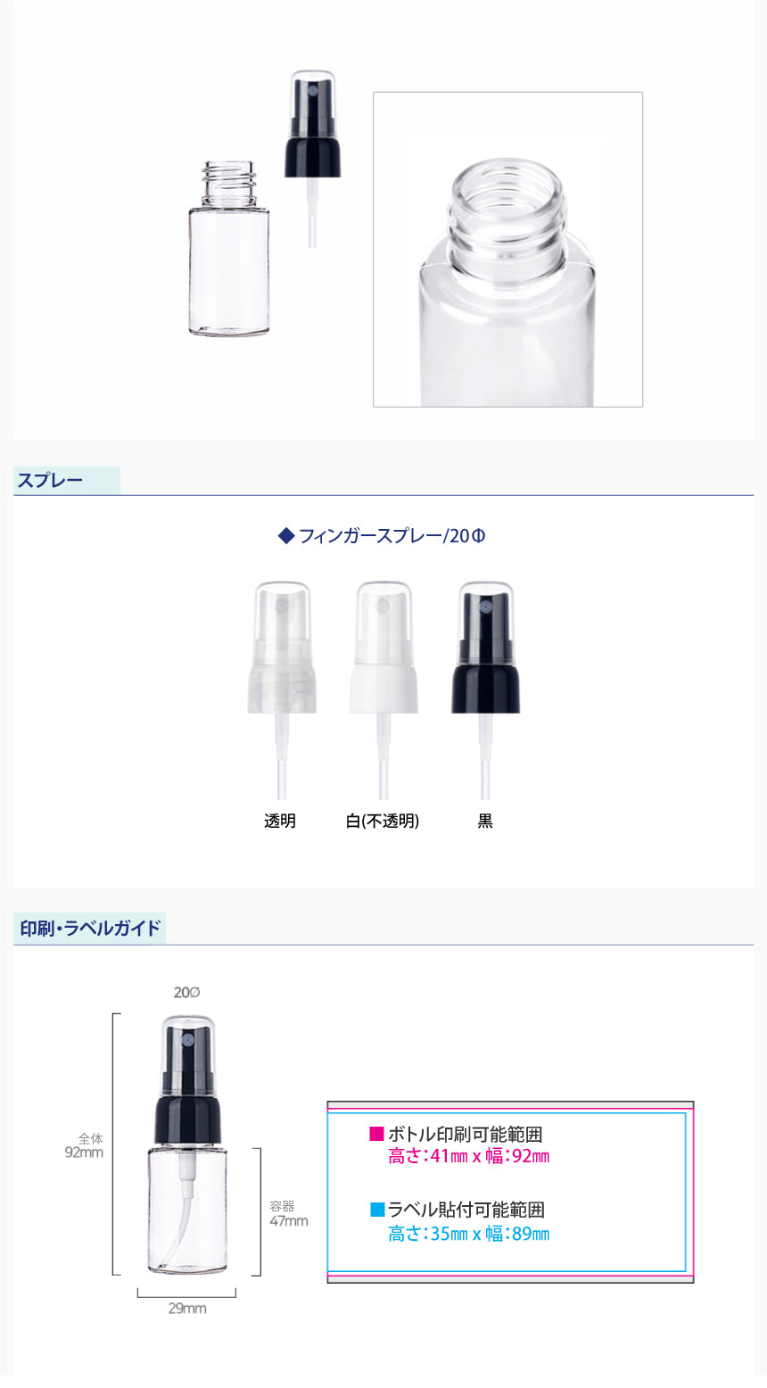 容量:20ml / 口径 : 20φ / 高さ:92mm / 直径 : 29mm