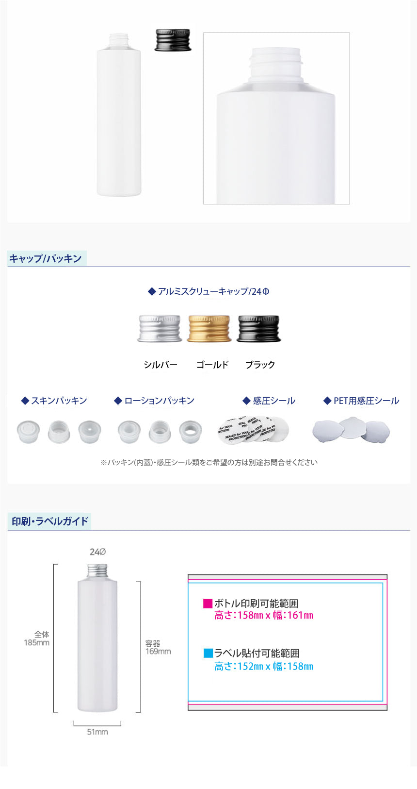 容量:300ml / 口径 : 24φ / 高さ:185mm / 直径 : 51mm