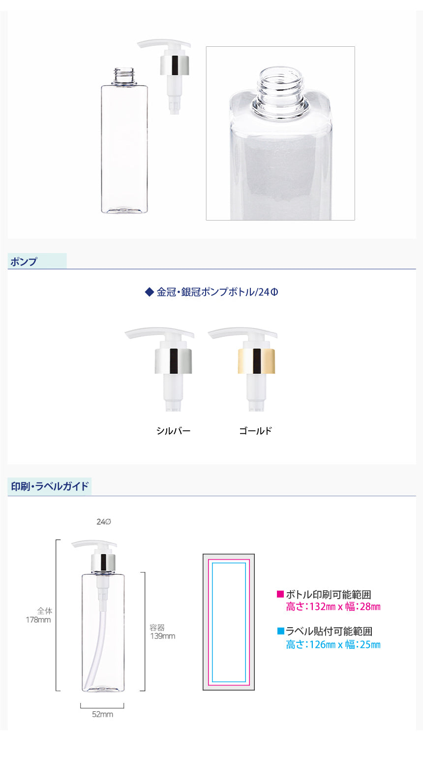 L) 金冠・銀冠ポンプボトル(角型) S300ml_PET