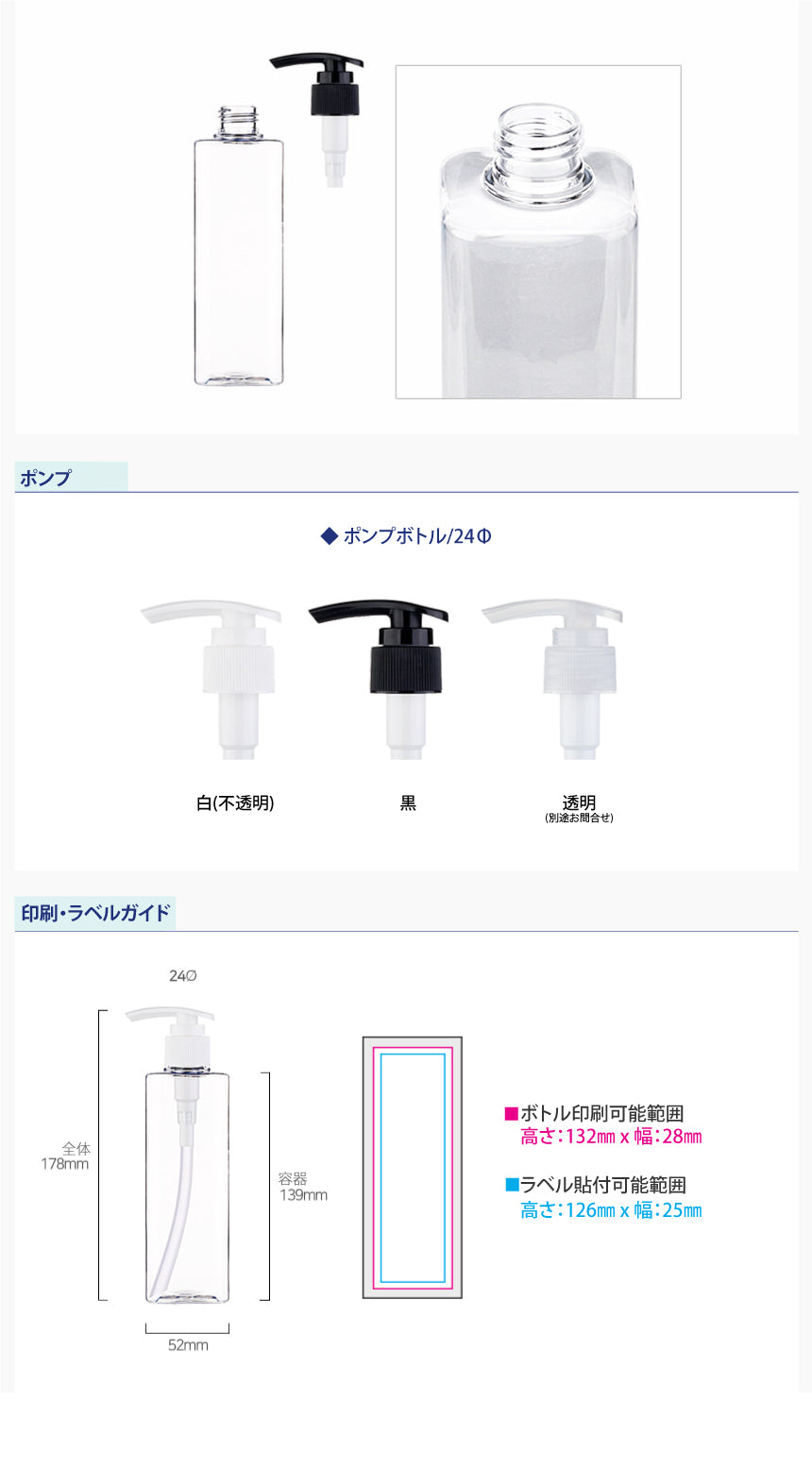 容量:300ml / 口径 : 24φ / 高さ:178mm / 幅 : 52mm