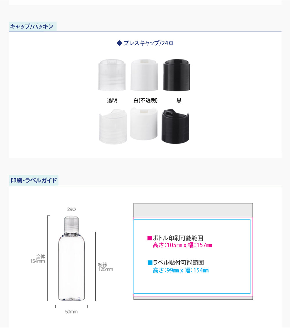 容量:200ml / 口径 : 24φ / 高さ:154mm / 直径 : 50mm