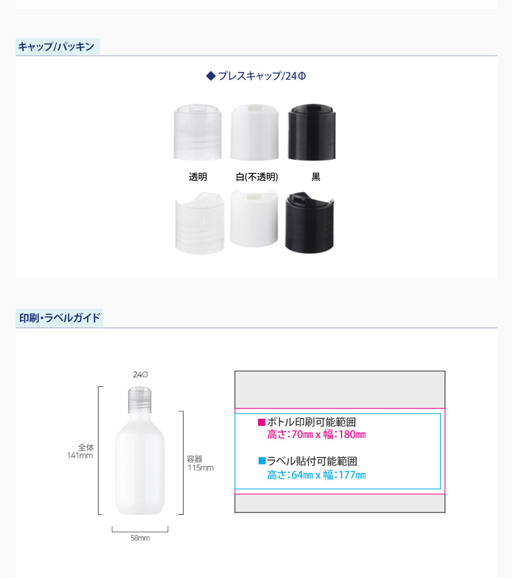 容量:200ml / 口径 : 24φ / 高さ:141mm / 直径 : 58mm