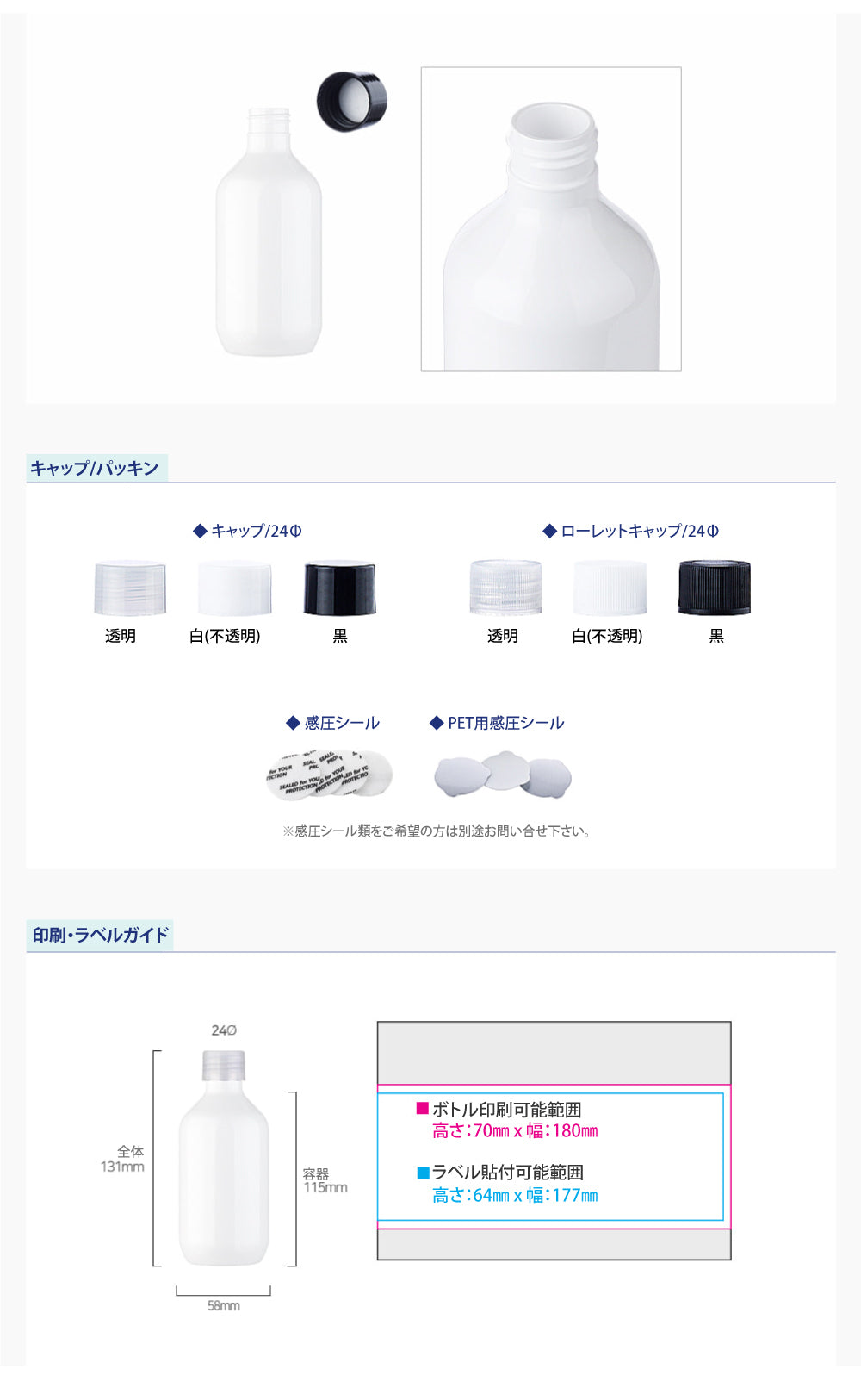 容量:200ml / 口径 : 24φ / 高さ:131mm / 直径 : 58mm