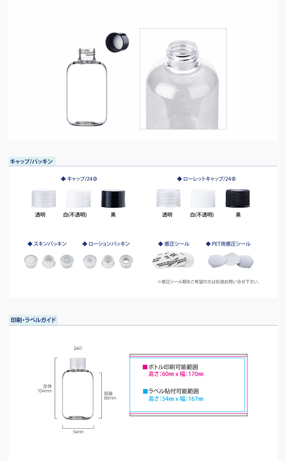 容量:150ml / 口径 : 24φ / 高さ:104mm / 直径 : 54mm