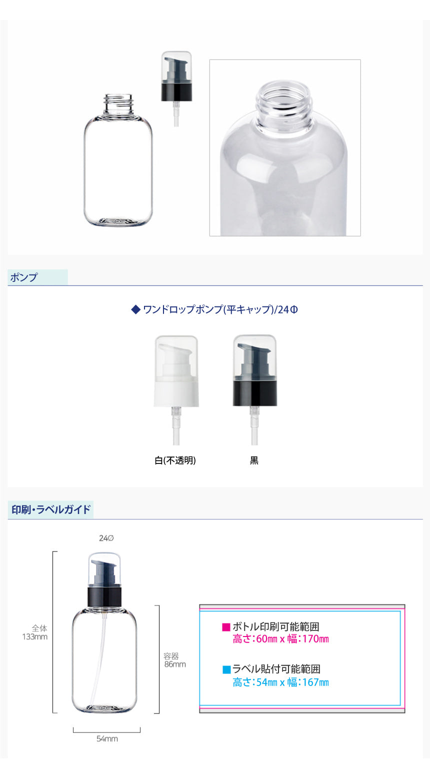 容量:150ml / 口径 : 24φ / 高さ:133mm / 直径 : 54mm