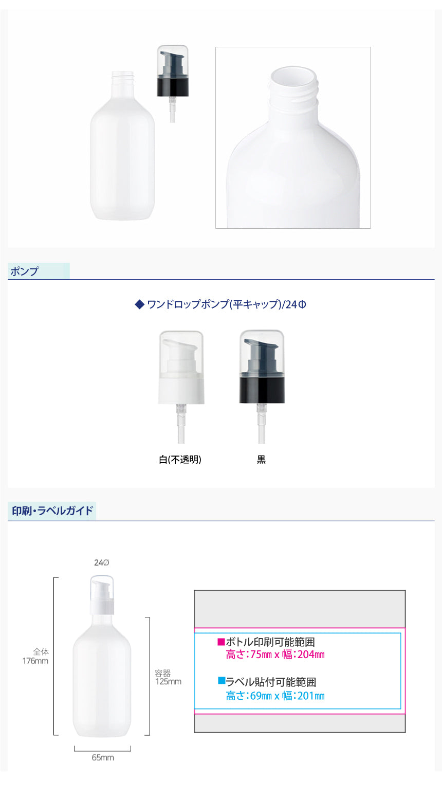 容量:300ml / 口径 : 24φ / 高さ:176mm / 直径 : 65mm
