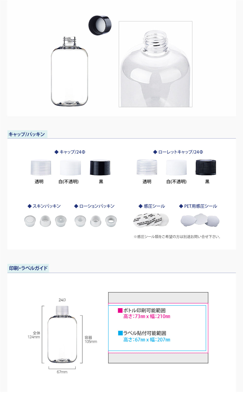 容量:300ml / 口径 : 24φ / 高さ:124mm / 直径 : 67mm