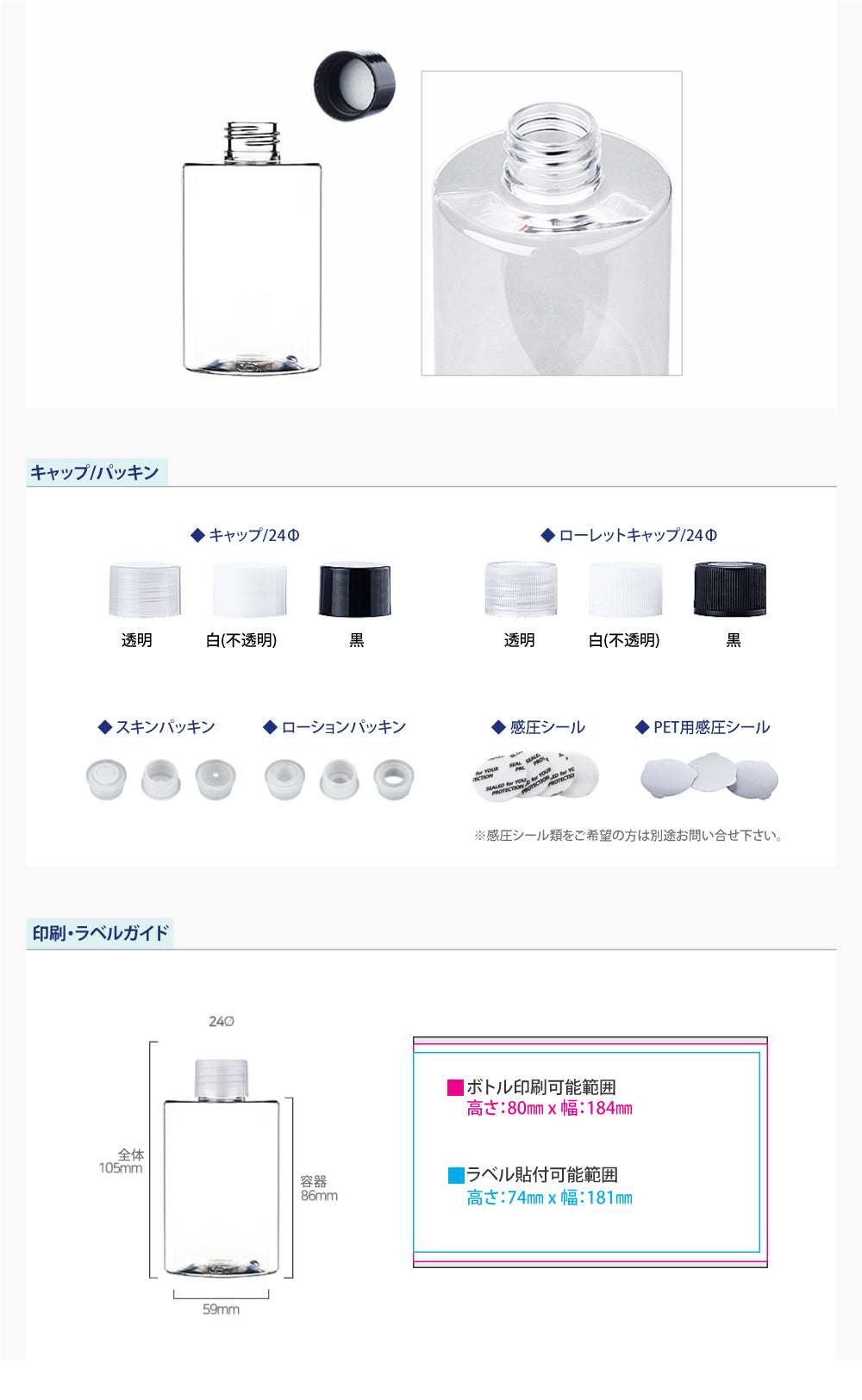 容量:200ml / 口径 : 24φ / 高さ:105mm / 直径 : 59mm