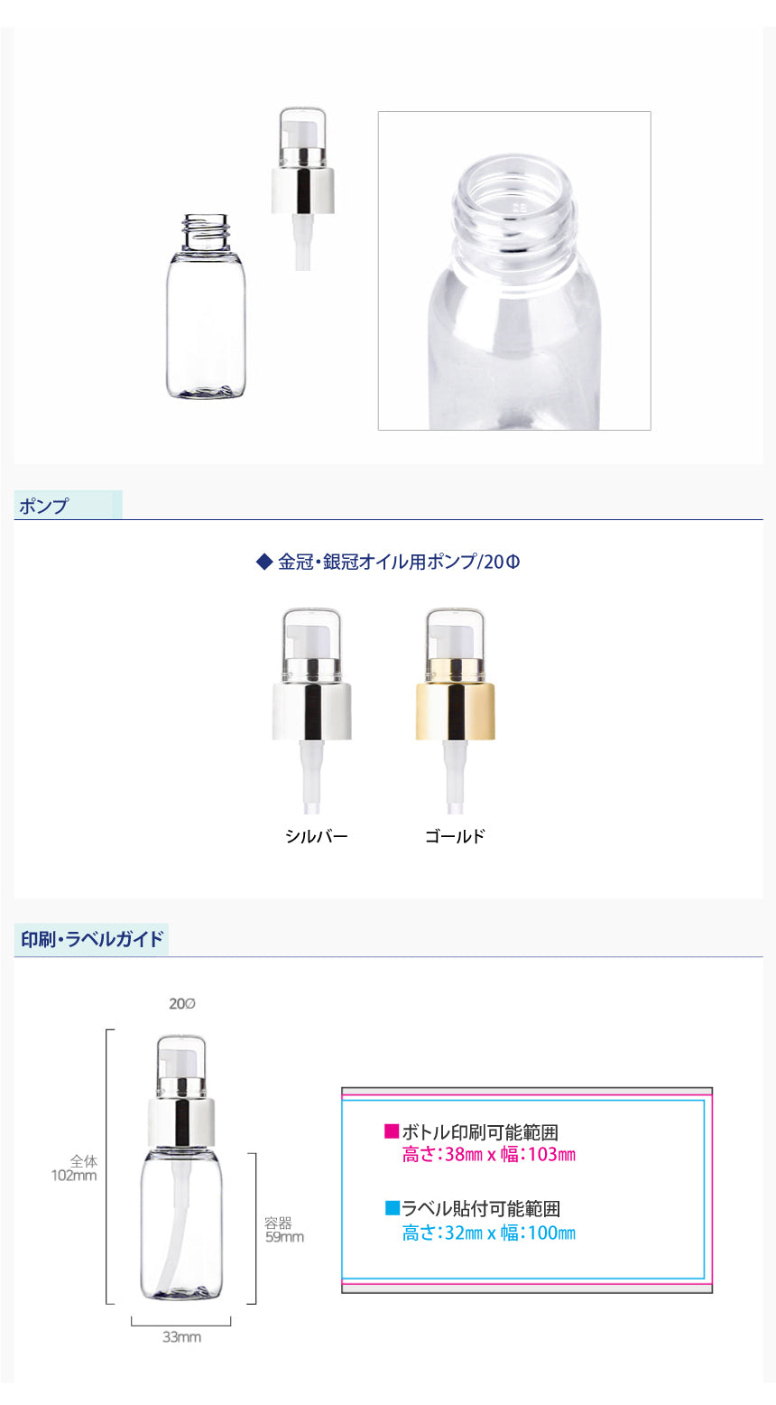 容量:40ml / 口径 : 20φ / 高さ:102mm / 直径 : 33mm