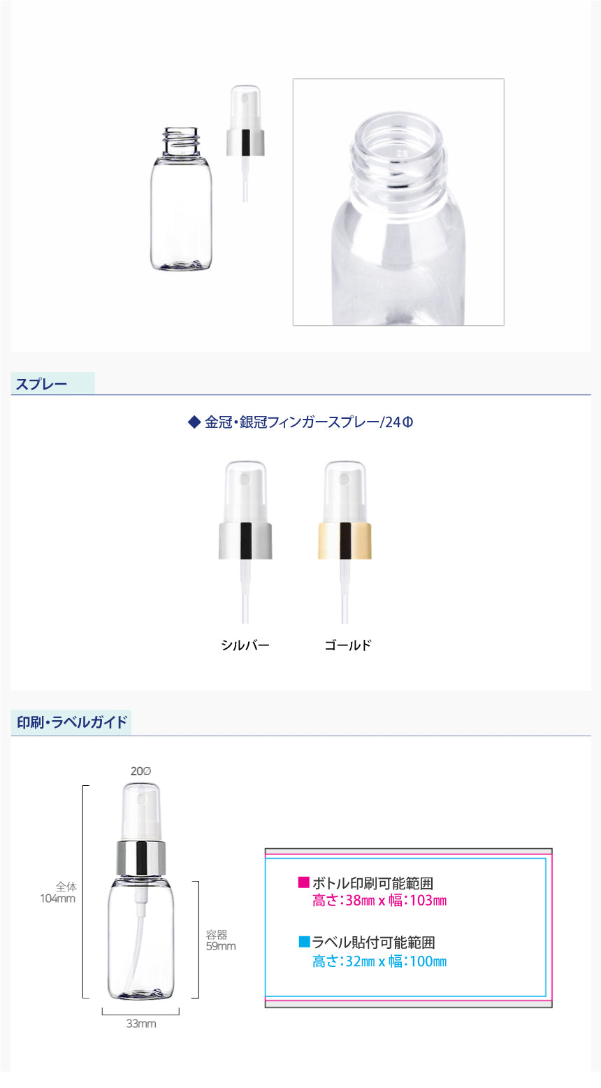 容量:40ml / 口径 : 20φ / 高さ:104mm / 直径 : 33mm