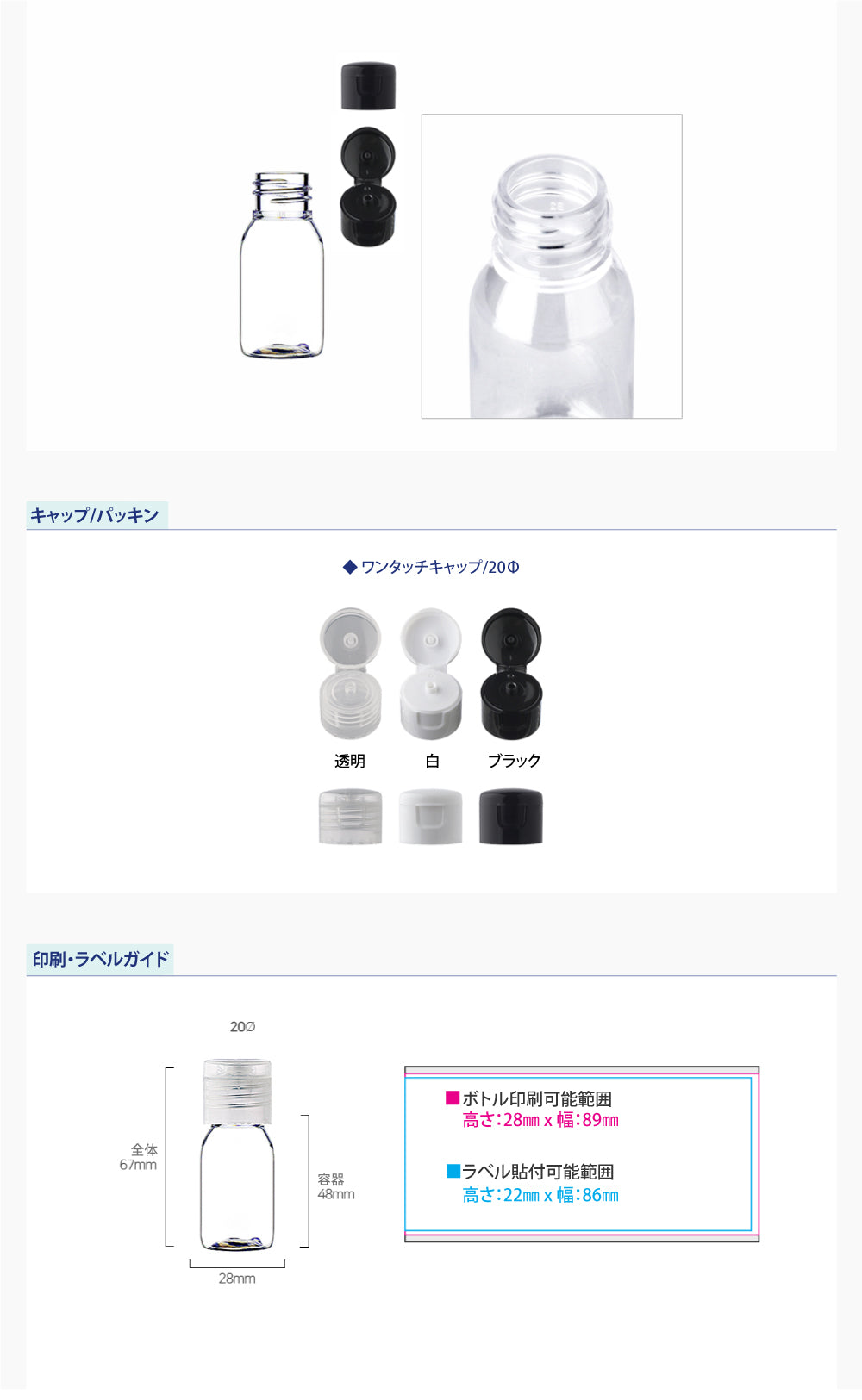 容量:20ml / 口径 : 20φ / 高さ:67mm / 直径 : 28mm