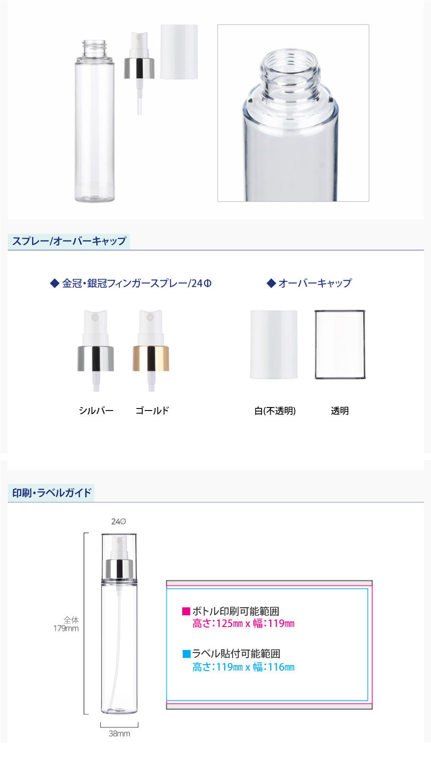 容量:120ml / 口径 : 24φ / 高さ:179mm / 直径 : 38mm