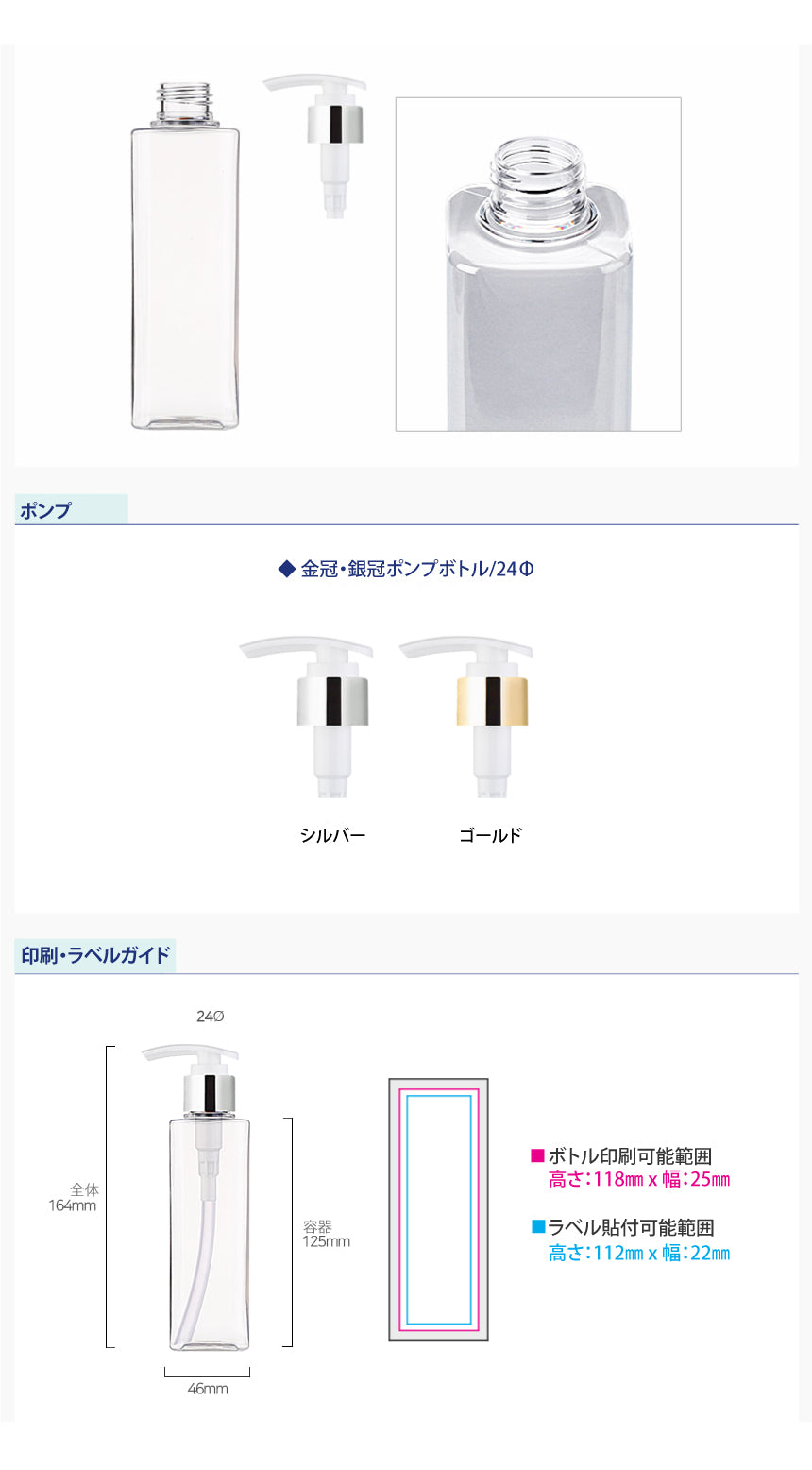 L) 金冠・銀冠ポンプボトル(角型) S200ml_PET