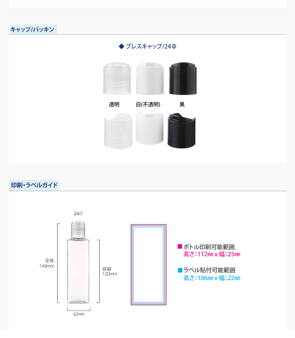 容量:150ml / 口径 : 24φ / 高さ:149mm / 幅 : 42mm