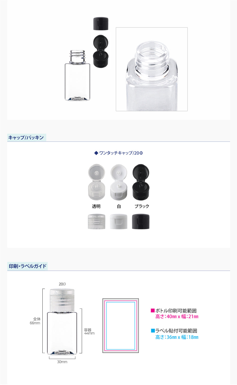 容量:30ml / 口径 : 20φ / 高さ:66mm / 幅 : 30mm