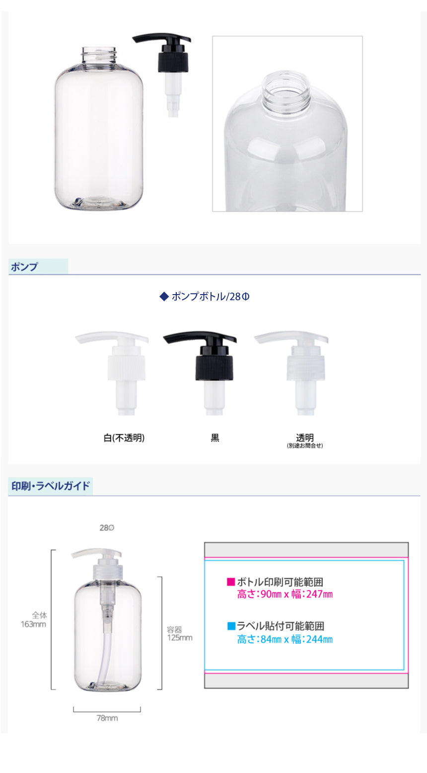 容量:500ml / 口径 : 32φ / 高さ:163mm / 直径 : 78mm