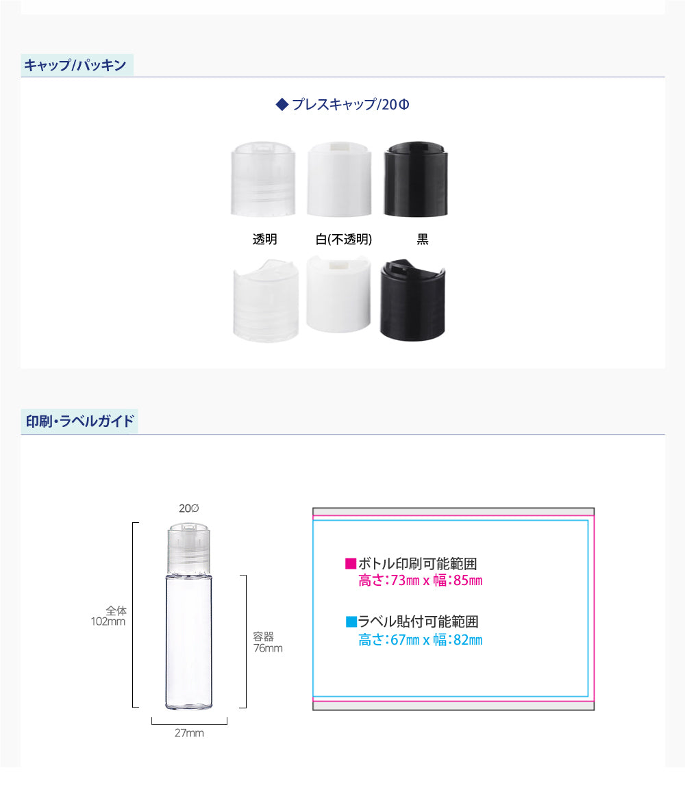 容量:30ml / 口径 : 20φ / 高さ:102mm / 直径 : 27mm