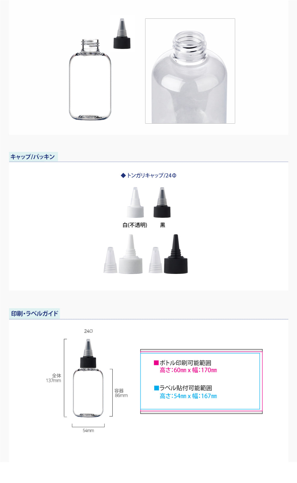 容量:150ml / 口径 : 24φ / 高さ:137mm / 直径 : 54mm