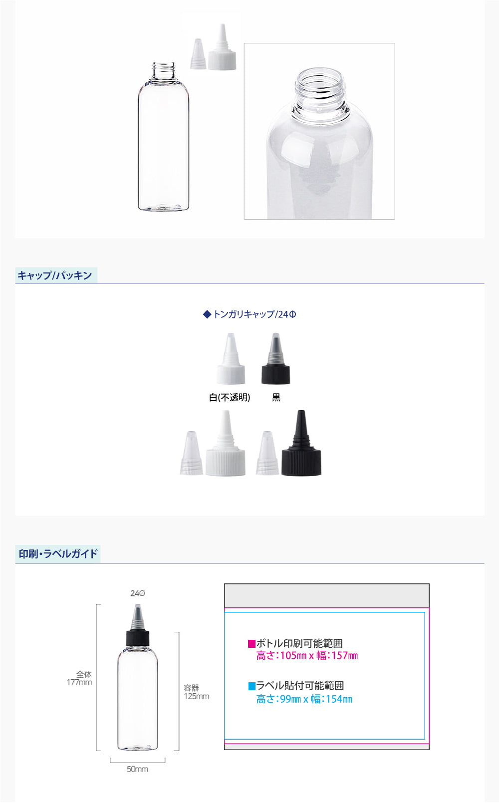 容量:200ml / 口径 : 24φ / 高さ:177mm / 直径 : 50mm