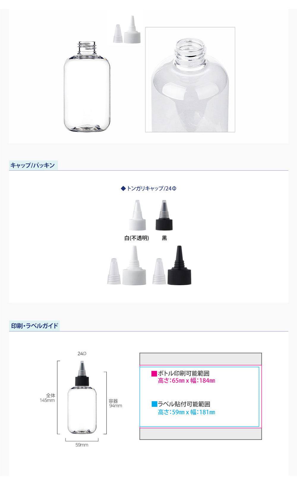 容量:200ml / 口径 : 24φ / 高さ:145mm / 直径 : 59mm
