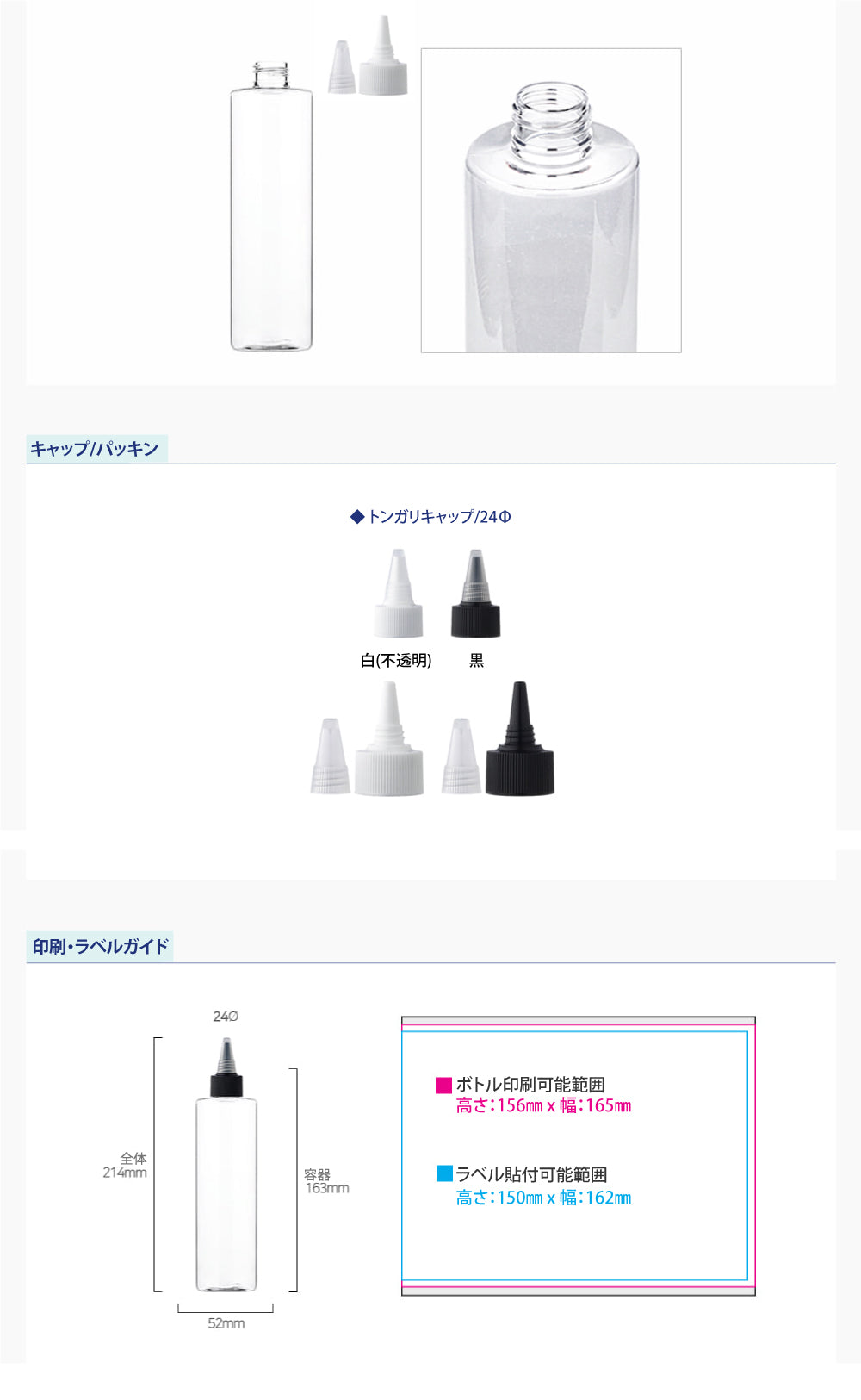 容量:300ml / 口径 : 24φ / 高さ:214mm / 直径 : 52mm