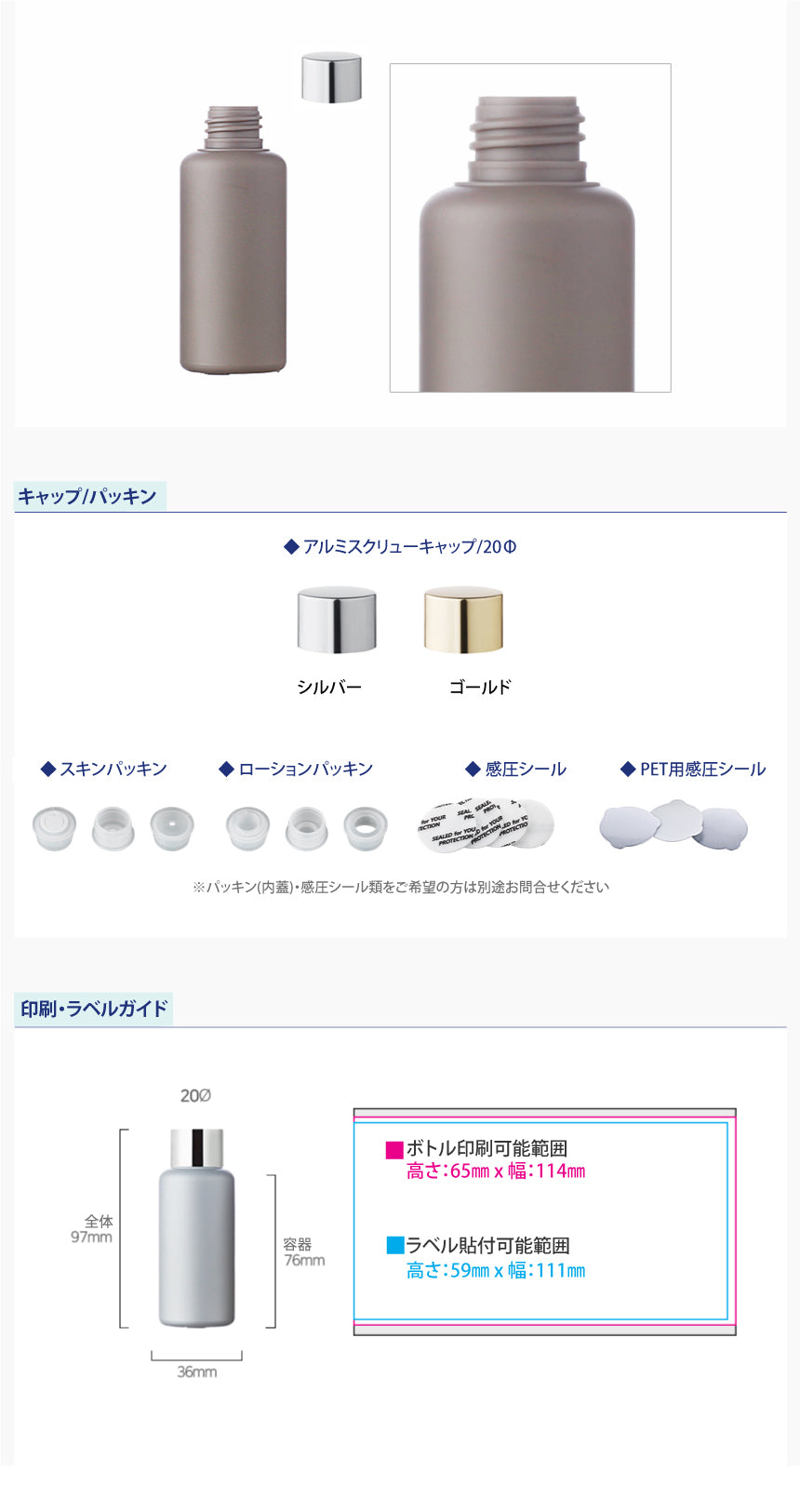 容量:60ml / 口径 : 20φ / 高さ:97mm / 直径 : 36mm