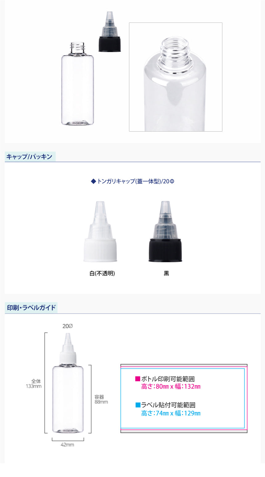 L) トンガリキャップ(蓋一体型-T・20φ) 低C100ml_PET