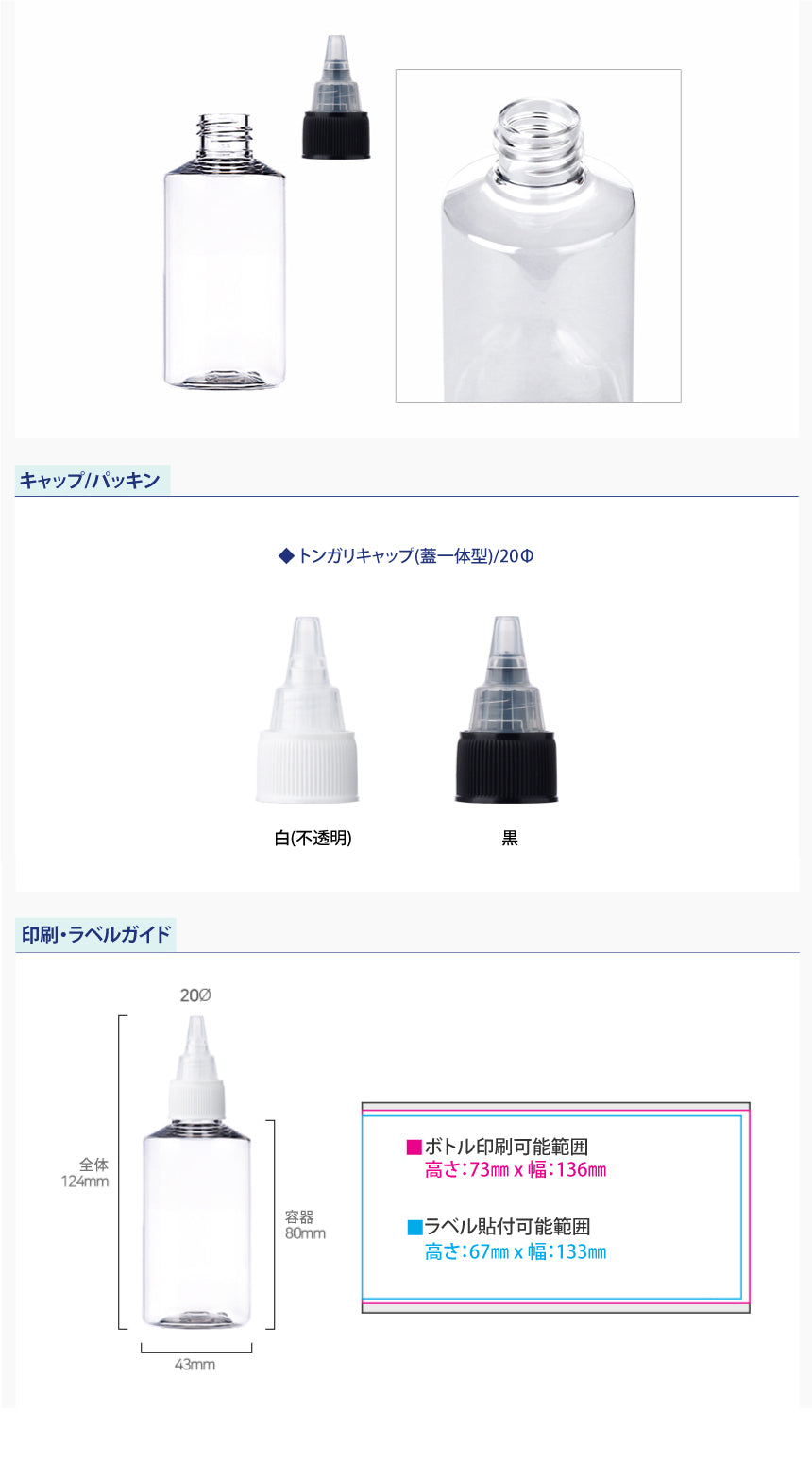 L) トンガリキャップ(蓋一体型-T) CA100ml_PET