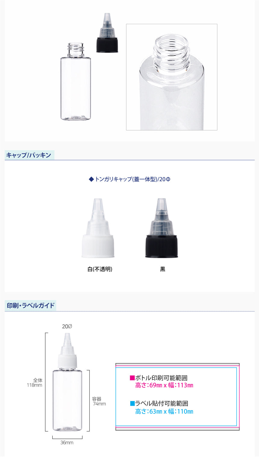 L) トンガリキャップ(蓋一体型-T) C60ml_PET