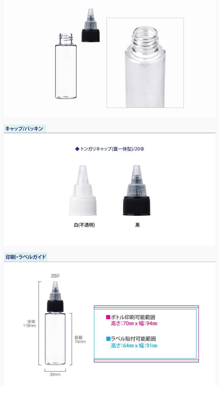L) トンガリキャップ(蓋一体型-T) C40ml_PET
