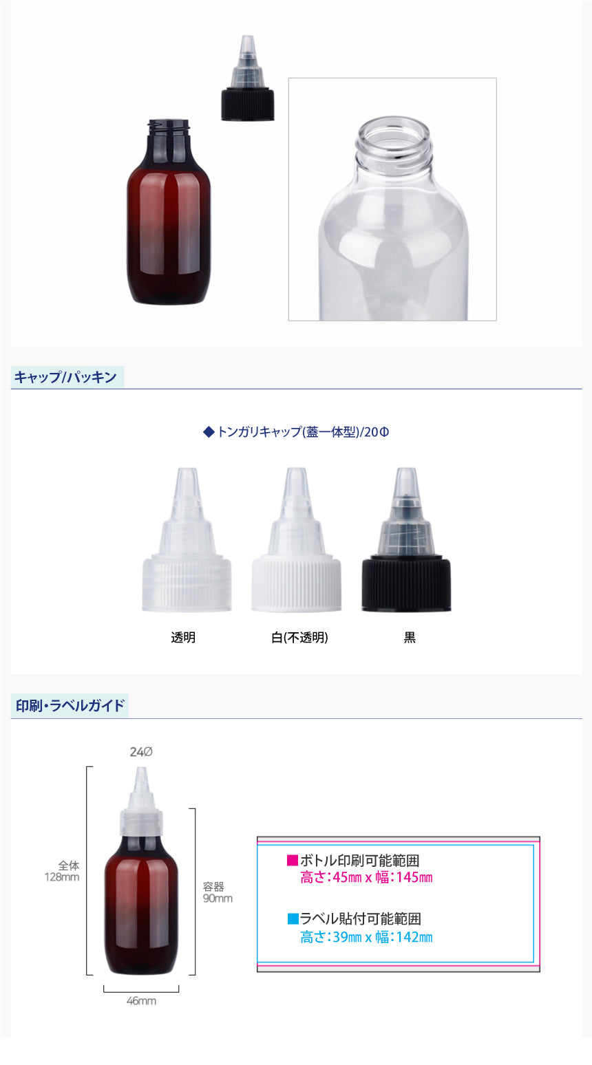 L) トンガリキャップ(蓋一体型-T) CAW100ml_PET