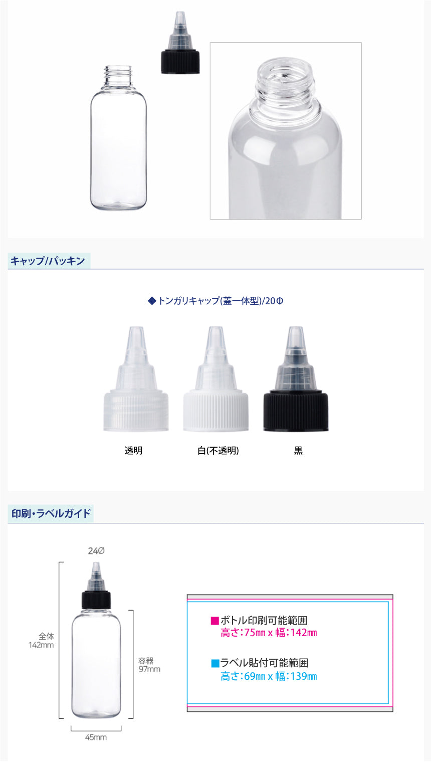 L) トンガリキャップ(蓋一体型-T) CR125ml_PET