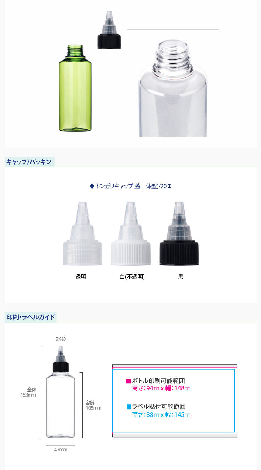 L) トンガリキャップ(蓋一体型-T) CA150ml_PET