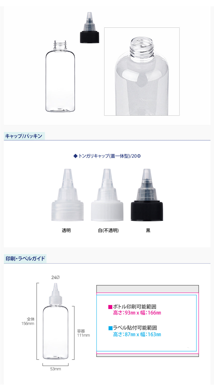 L) トンガリキャップ(蓋一体型-T) CR200ml_PET