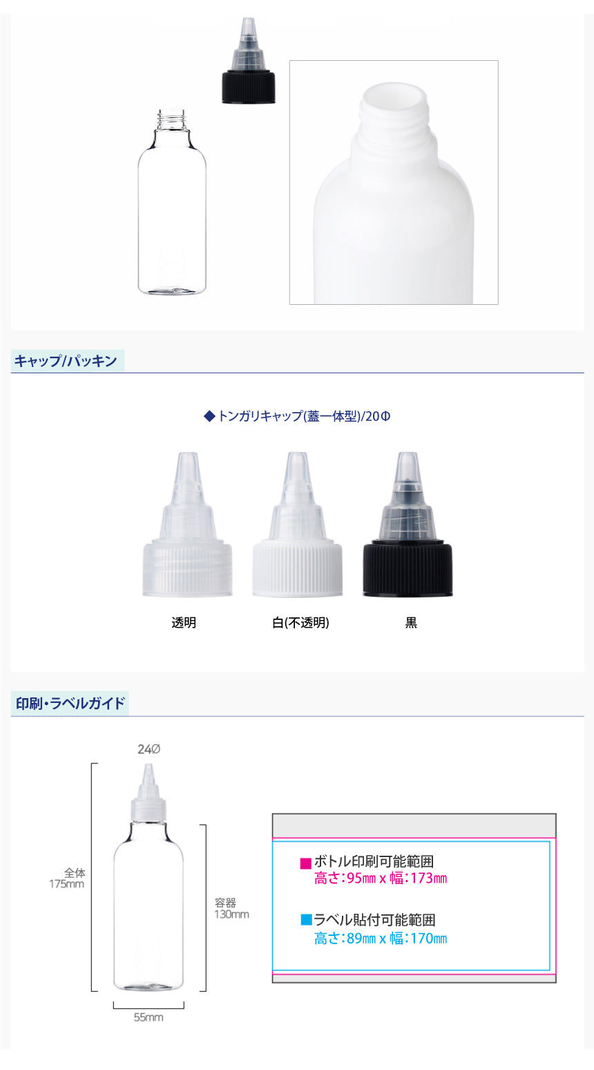 L) トンガリキャップ(蓋一体型-T) CW250ml_PET