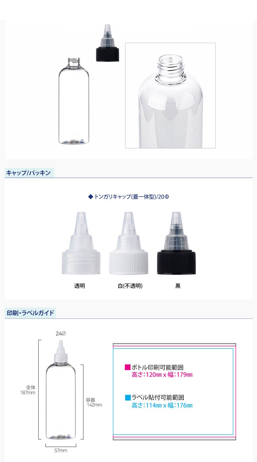 L) トンガリキャップ(蓋一体型-T) CRN300ml_PET