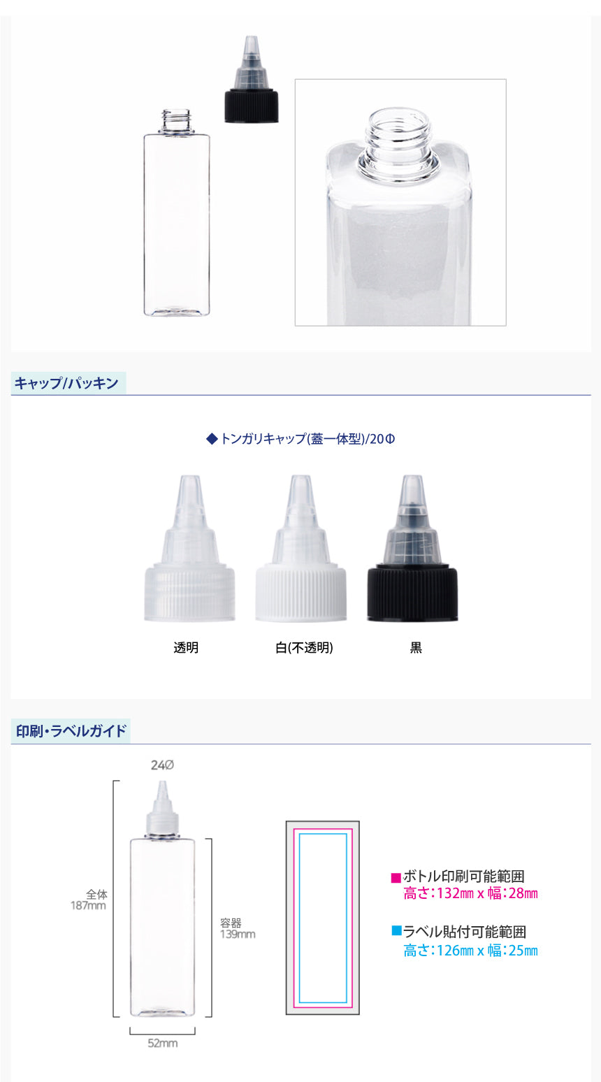 L) トンガリキャップ(蓋一体型-T・角型) S300ml_PET